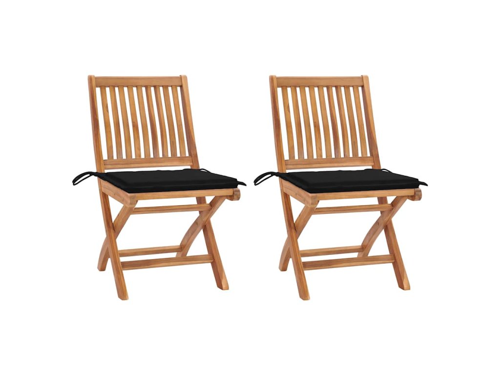 Zahradní židle 2 ks s černými poduškami masivní teak 3062440