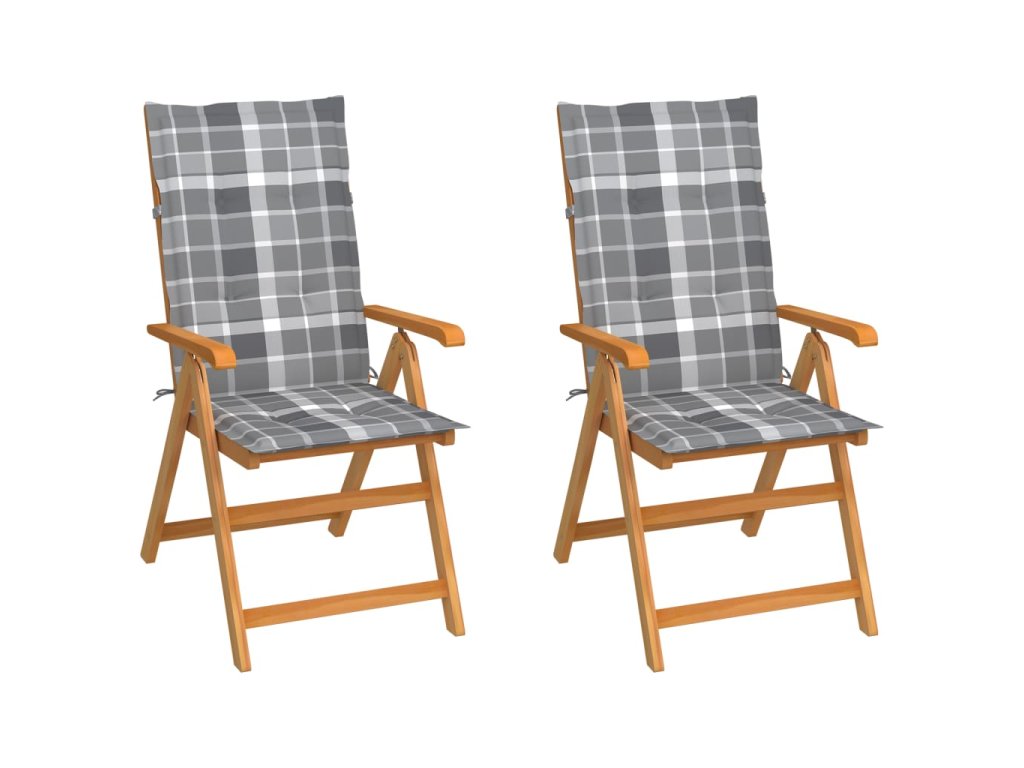 Zahradní židle 2 ks šedé kárované podušky masivní teakové dřevo 3062390