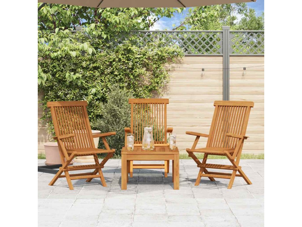 Tato sada 3 teakových zahradních židlí skvěle doplní vaše zahradní posezení, terasu nebo dvůr a je perfektní pro chvíle s rodinou a přáteli nebo relaxaci za hezkého počasí.