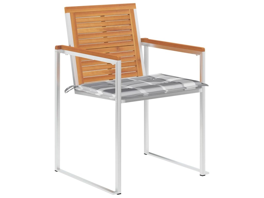 Jídelní židle jsou vyrobeny z masivního akáciového dřeva a vysoce kvalitní nerezové oceli, takže jsou vysoce odolné, nerezavějící, robustní a snadno se čistí vlhkým hadříkem. Přiložená poduška je více než jen praktickým doplňkem, plní také dekorativní funkci. Posaďte se k příjemné večeři pod širým nebem nebo jen relaxujte a užívejte si počasí s touto klasickou sadou zahradních židlí.