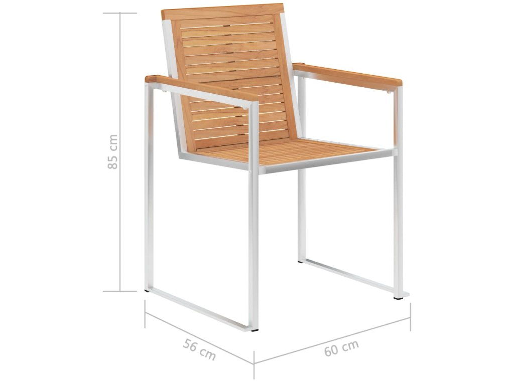Nábytek je zhotovený z extrémně odolného teakového tvrdého dřeva, které již prošlo procesem smršťování, bylo uměle vysušené a poté jemně a dohladka obroušené. Teakové dřevo je oceňované pro svou výjimečnou pevnost a klimatickou odolnost, a proto je jedním z nejoblíbenějších materiálů pro výrobu zahradního nábytku. Je to skvělá volba, pokud si chcete pořídit venkovní výbavu, která vám vydrží sloužit dlouhá léta. Vzhledem k rámu z vysoce kvalitní nerezové oceli jsou židle zároveň robustní a odolné vůči korozi. Přiložená poduška slouží nejen jako praktický doplněk – plní také dekorativní funkci. Posaďte se a dopřejte si venku skvělou večeři nebo si jen tak odpočiňte a užívejte si počasí s touto klasickou sadou zahradních židlí.