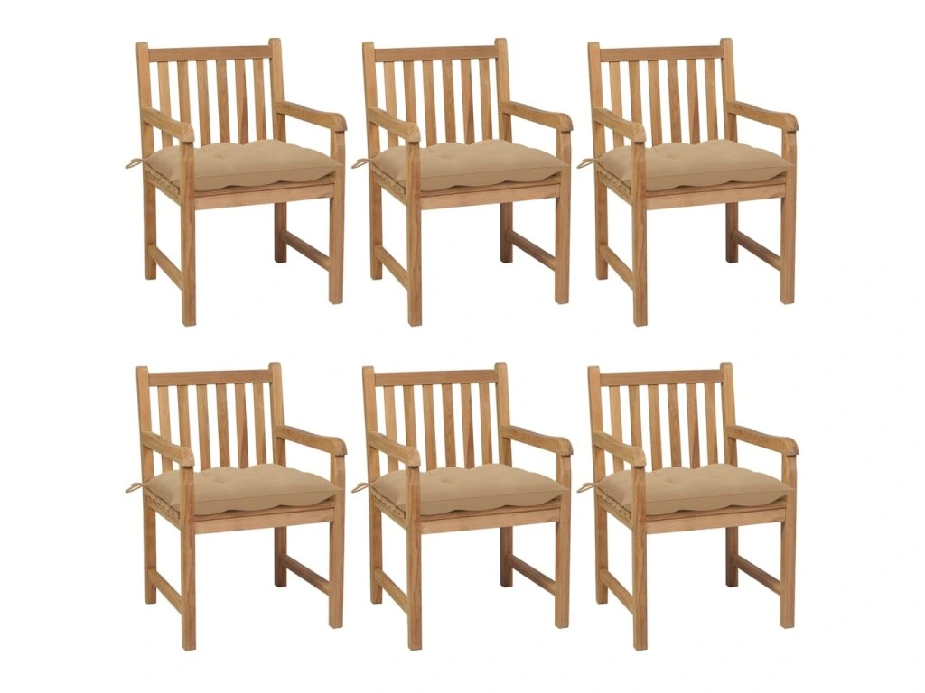 Zahradní židle 6 ks béžové podušky masivní teak 3073049