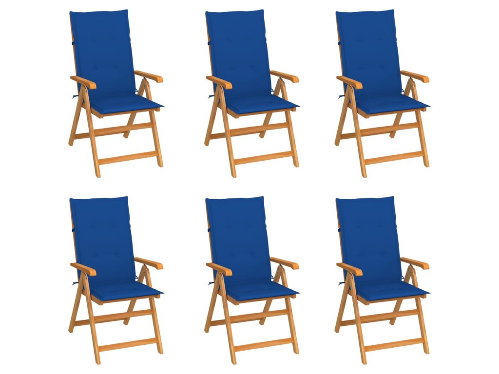 Zahradní židle 6 ks s královsky modrými poduškami masivní teak 3065570