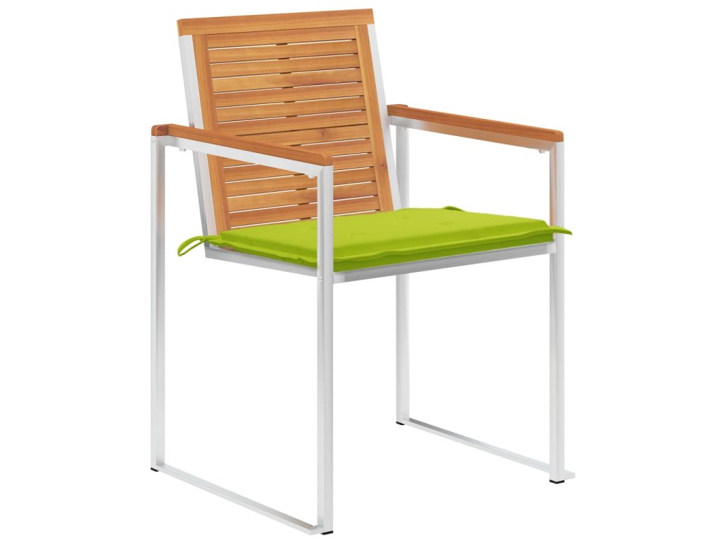 Jídelní židle jsou vyrobeny z masivního akáciového dřeva a vysoce kvalitní nerezové oceli, takže jsou vysoce odolné, nerezavějící, robustní a snadno se čistí vlhkým hadříkem. Přiložená poduška je více než jen praktickým doplňkem, plní také dekorativní funkci. Posaďte se k příjemné večeři pod širým nebem nebo jen relaxujte a užívejte si počasí s touto klasickou sadou zahradních židlí.