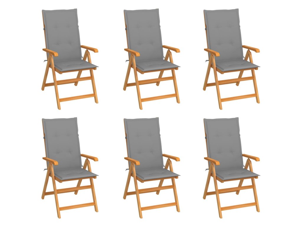 Zahradní židle 6 ks s šedými poduškami masivní teak 3065561