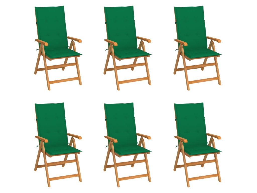 Zahradní židle 6 ks se zelenými poduškami masivní teak 3065565