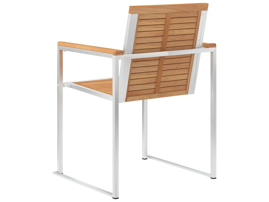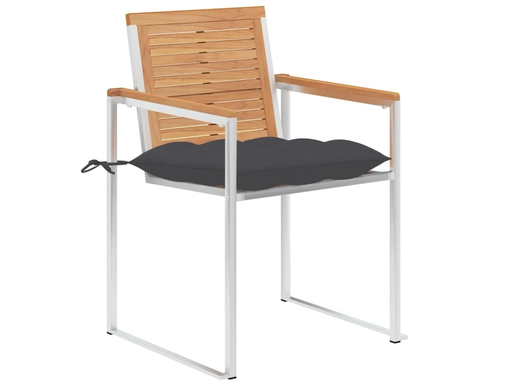 Nábytek je zhotovený z extrémně odolného teakového tvrdého dřeva, které již prošlo procesem smršťování, bylo uměle vysušené a poté jemně a dohladka obroušené. Teakové dřevo je oceňované pro svou výjimečnou pevnost a klimatickou odolnost, a proto je jedním z nejoblíbenějších materiálů pro výrobu zahradního nábytku. Je to skvělá volba, pokud si chcete pořídit venkovní výbavu, která vám vydrží sloužit dlouhá léta. Vzhledem k rámu z vysoce kvalitní nerezové oceli jsou židle zároveň robustní a odolné vůči korozi. Přiložená poduška slouží nejen jako praktický doplněk – plní také dekorativní funkci. Posaďte se a dopřejte si venku skvělou večeři nebo si jen tak odpočiňte a užívejte si počasí s touto klasickou sadou zahradních židlí.