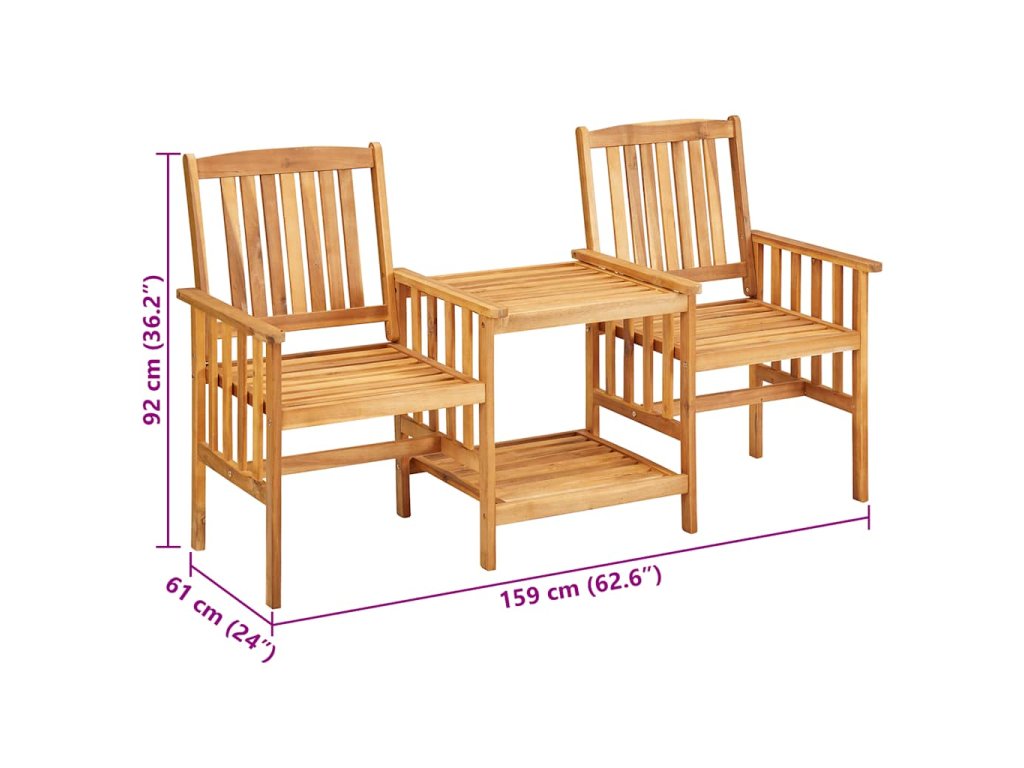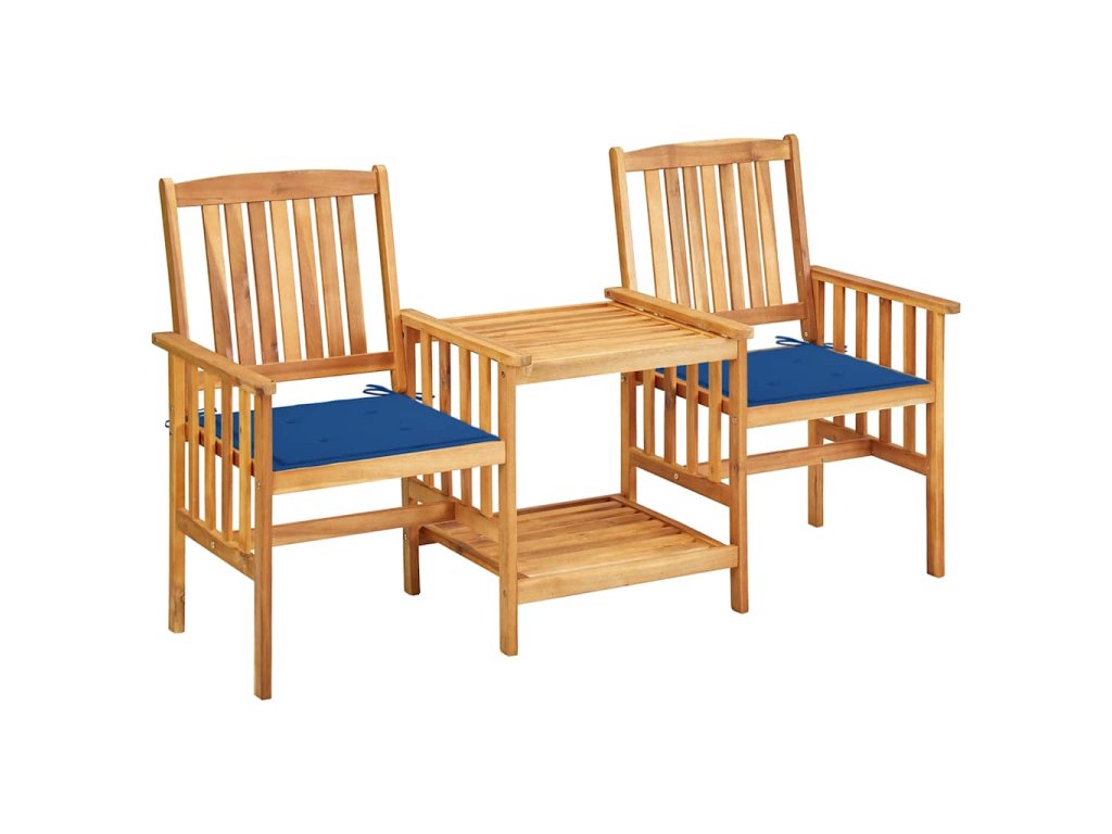 Zahradní židle s čajovým stolkem a poduškami 2ks akáciové dřevo 3061285