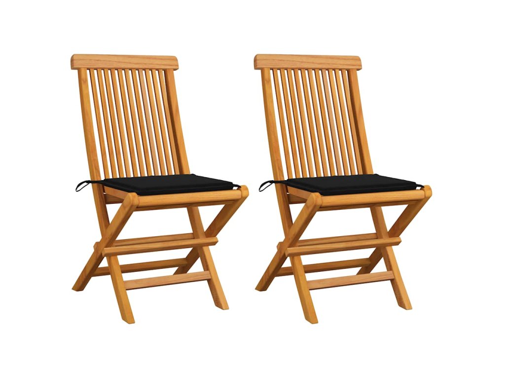 Zahradní židle s černými poduškami 2 ks masivní teak 3062467