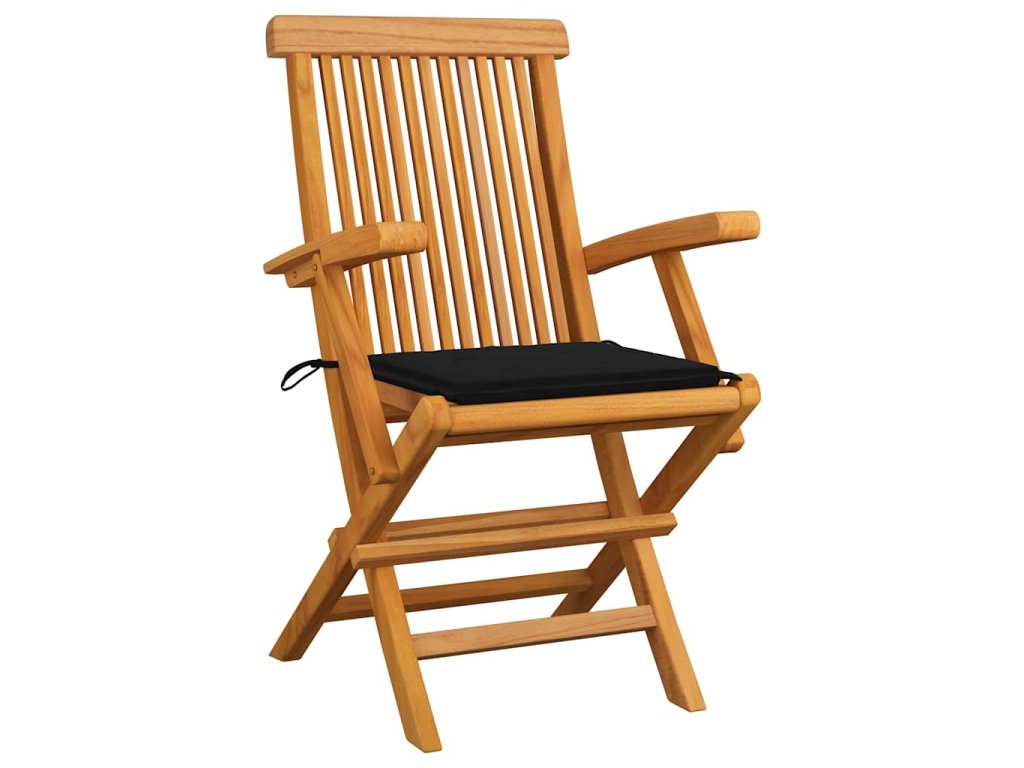 Zahradní židle s černými poduškami 3 ks masivní teak 3062521