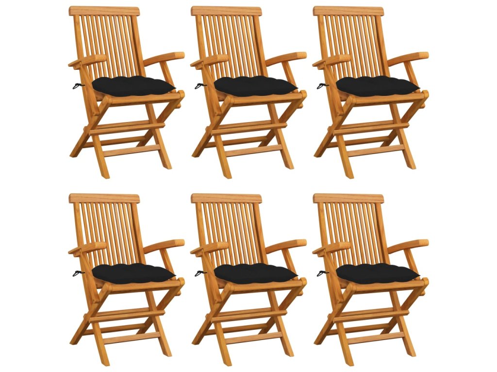 Zahradní židle s černými poduškami 6 ks masivní teak 3062563
