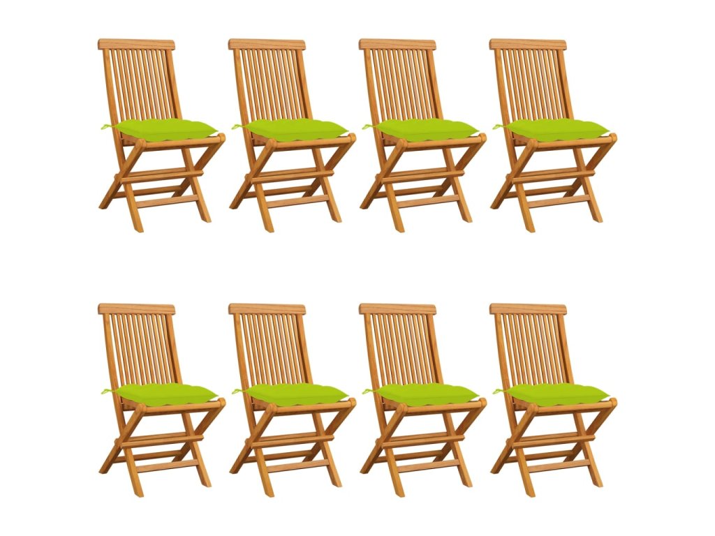 Zahradní židle s jasně zelenými poduškami 8 ks masivní teak 3072943
