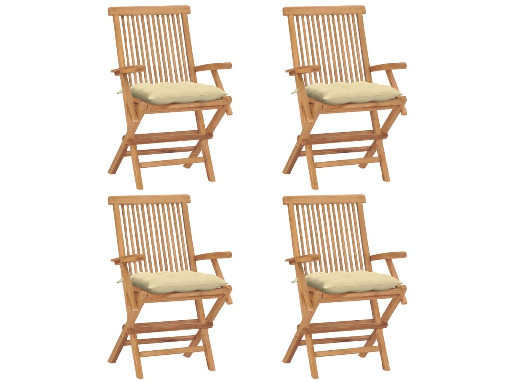 Zahradní židle s krémově bílými poduškami 4 ks masivní teak 3065634