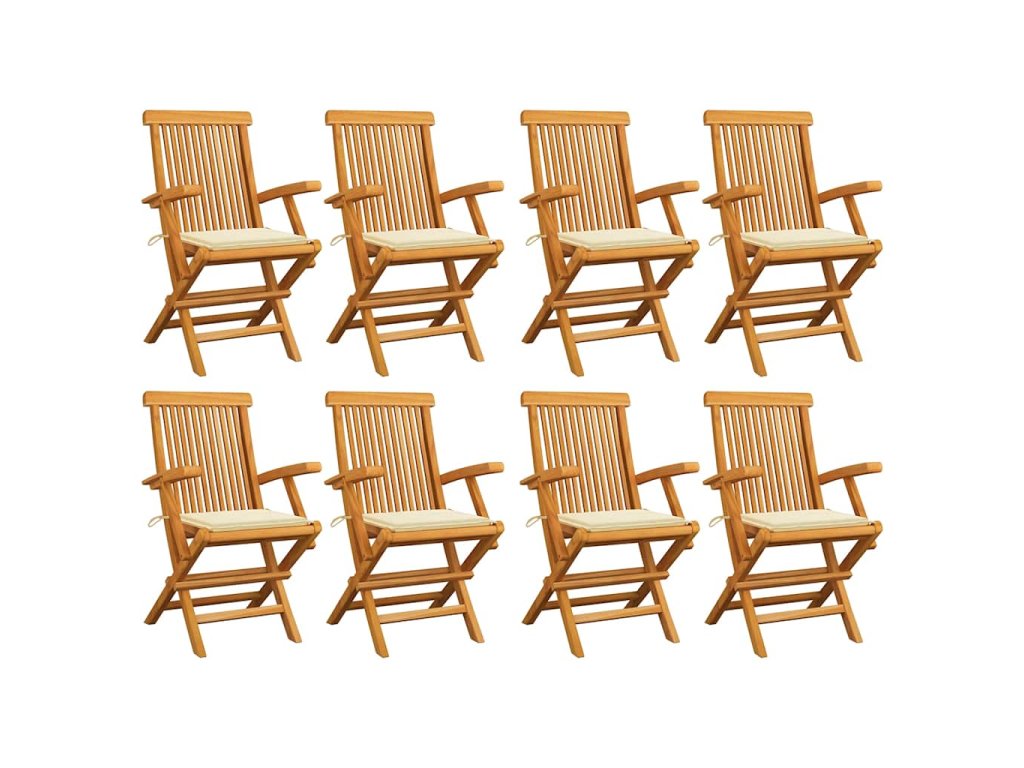 Zahradní židle s krémovými poduškami 8 ks masivní teak 3072891