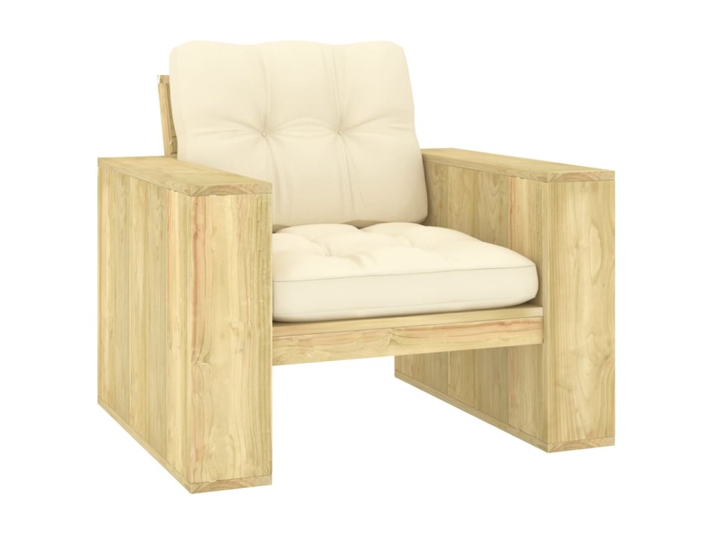 Zahradní židle s krémovými poduškami impregnovaná borovice 3065743