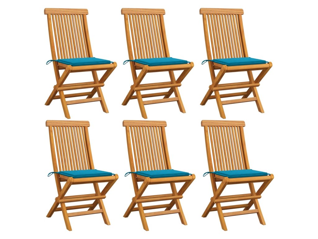 Zahradní židle s modrými poduškami 6 ks masivní teak 3065594