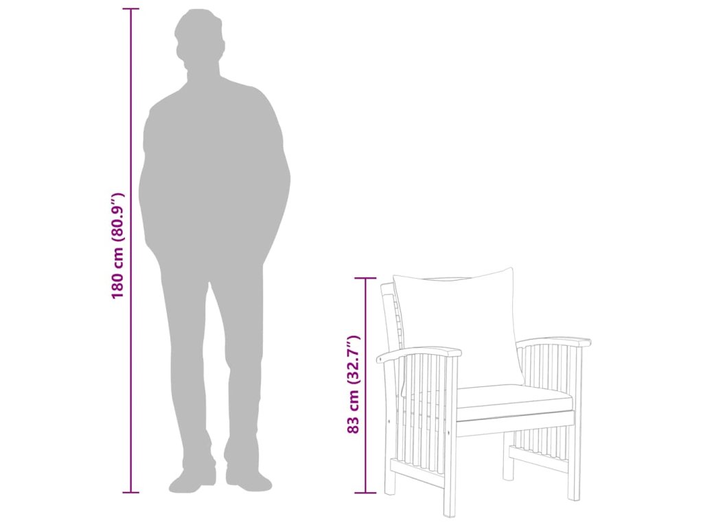 Zahradní křeslo je vyrobené z masivního akáciového dřeva s olejovým povrchem, je stabilní a má dlouhou životnost. Řemeslné zpracování a krásná kresba dřeva dává každému kusu nábytku jeho charakteristický a neopakovatelný vzhled. Podušky na sedáku a polštář za záda přispívá k pohodlnému posezení.