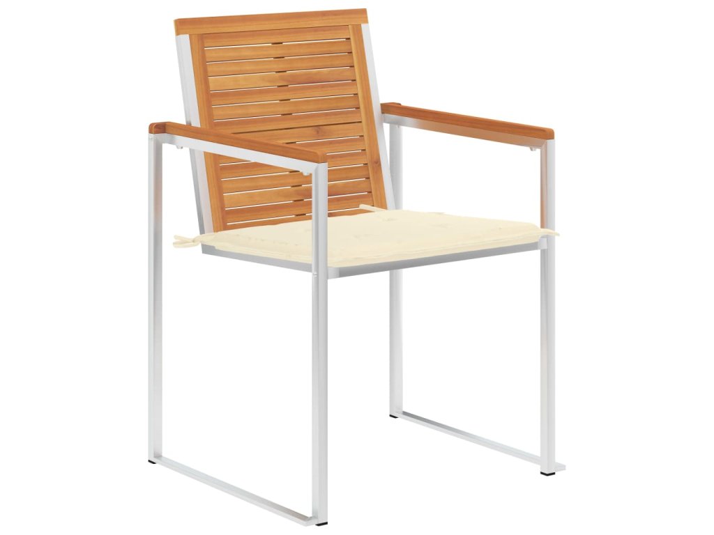 Tyto židle jsou vyrobené z masivního akáciového dřeva s olejovou povrchovou úpravou a z nerezové oceli 304, jsou tudíž odolné proti rzi, robustní a snadno se čistí. Mají podušku, se kterou bude sezení ještě pohodlnější. Každá poduška je opatřená 2 páry šňůrek, kterými můžete podušku pevně přivázat k venkovní židli.