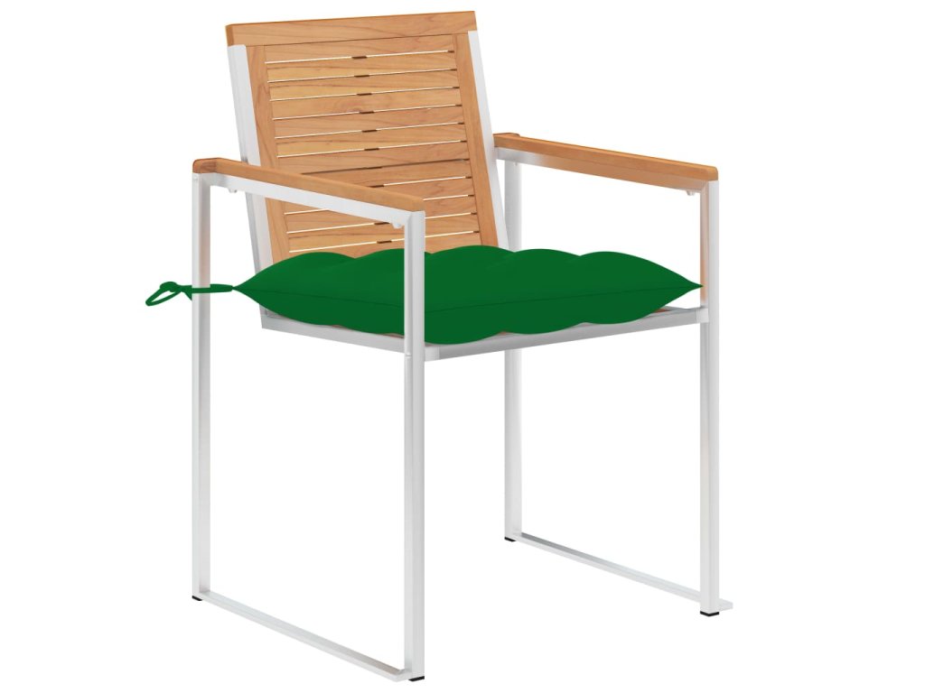 Nábytek je zhotovený z extrémně odolného teakového tvrdého dřeva, které již prošlo procesem smršťování, bylo uměle vysušené a poté jemně a dohladka obroušené. Teakové dřevo je oceňované pro svou výjimečnou pevnost a klimatickou odolnost, a proto je jedním z nejoblíbenějších materiálů pro výrobu zahradního nábytku. Je to skvělá volba, pokud si chcete pořídit venkovní výbavu, která vám vydrží sloužit dlouhá léta. Židle jsou vyrobené z vysoce kvalitní nerezové oceli 304, takže nerezaví a snadno se čistí. Podušky vám zajistí mimořádné pohodlí. Každá poduška je opatřená dvěma páry šňůrek, za které můžete podušku upevnit na místě.