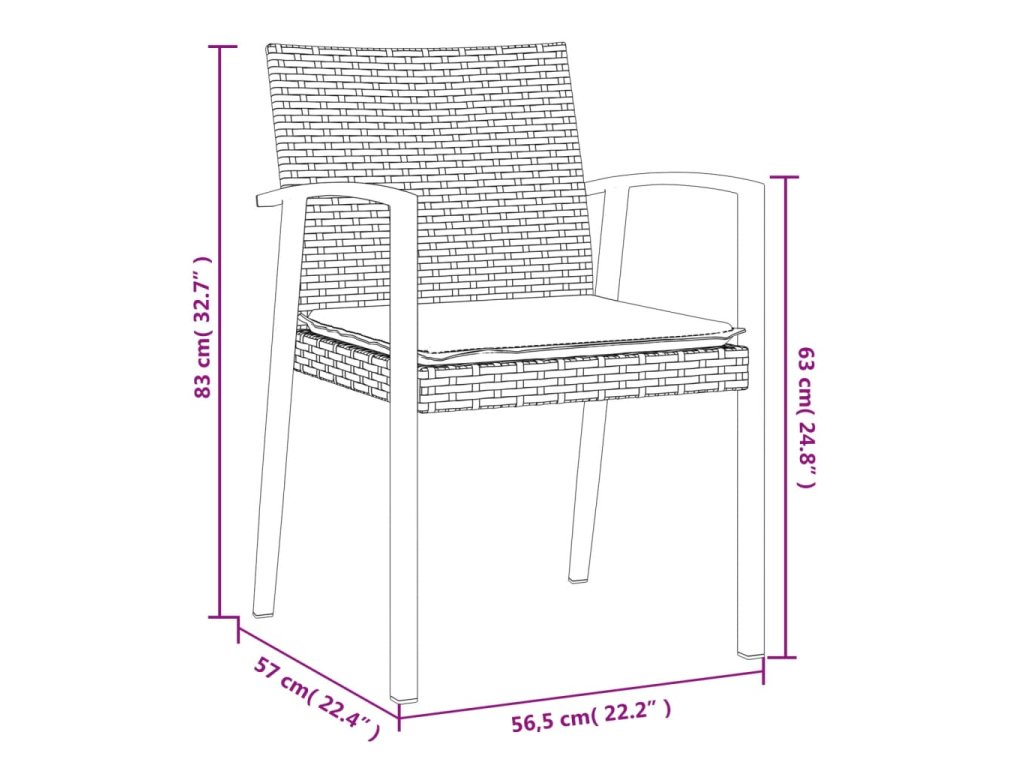 Zahradní židle s poduškami 4 ks černé 56,5x57x83 cm polyratan 3187079