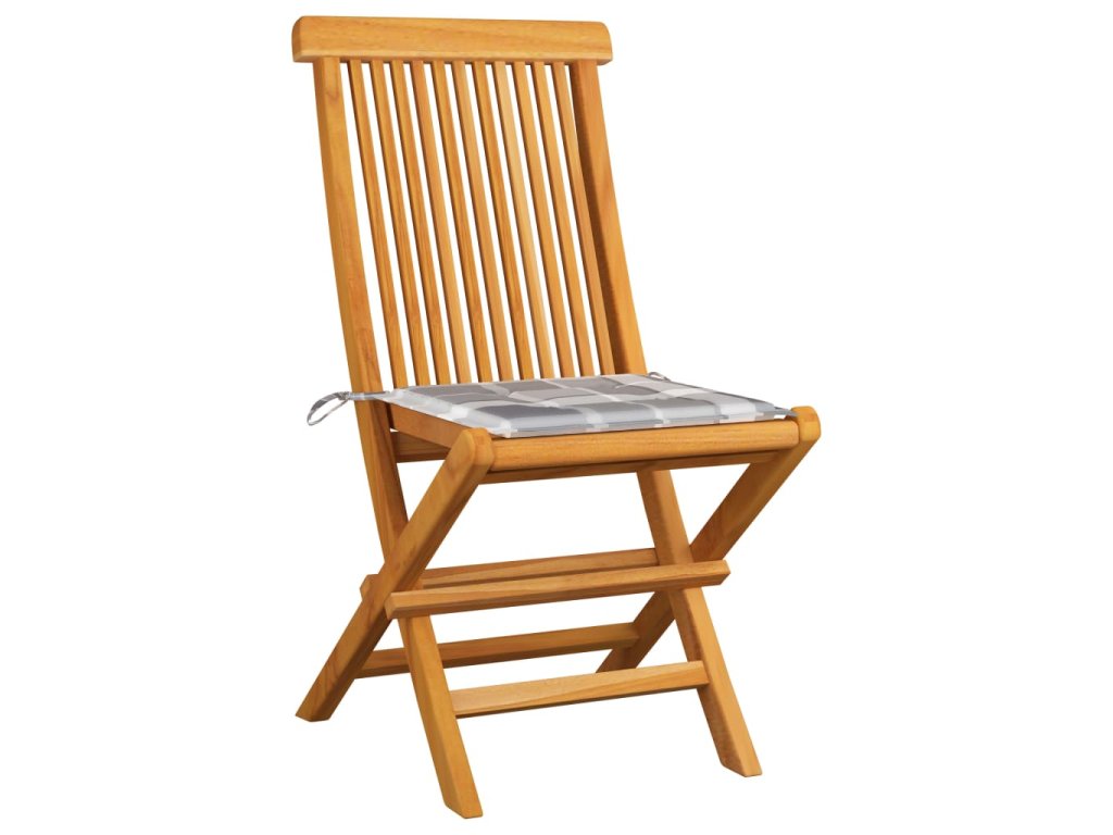 Zahradní židle s šedými károvanými poduškami 2 ks masivní teak 3062474