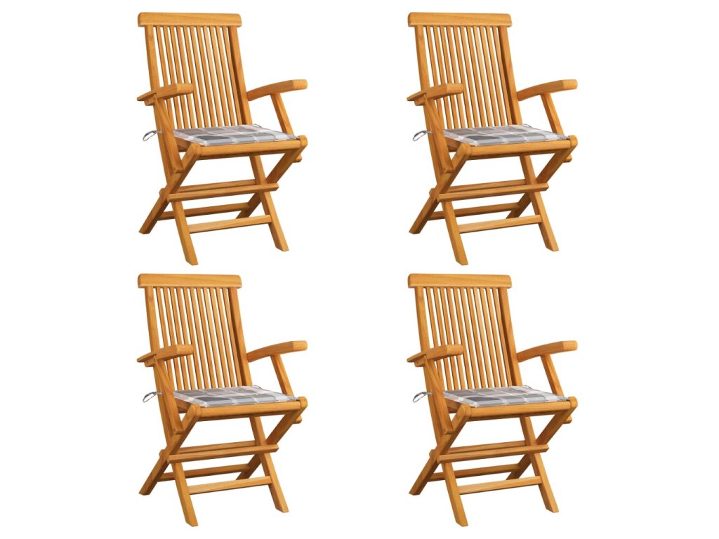 Zahradní židle s šedými károvanými poduškami 4 ks masivní teak 3065631