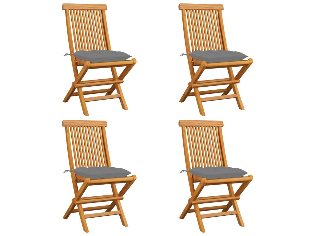 Zahradní židle s šedými poduškami 4 ks masivní teak 3062584