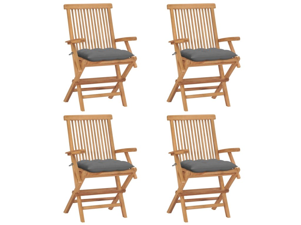 Zahradní židle s šedými poduškami 4 ks masivní teak 3065633