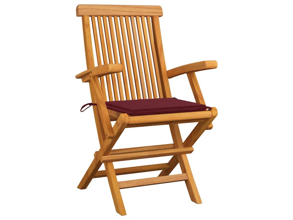 Zahradní židle s vínovými poduškami 3 ks masivní teak 3062523