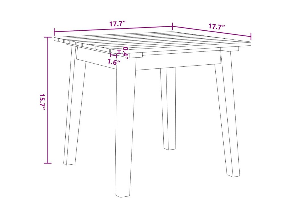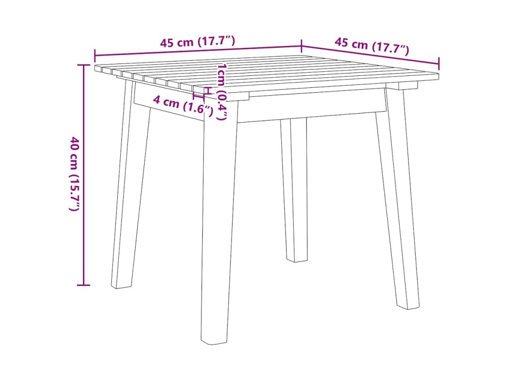 - 1 x zahradní stůl: 90 x 45 x 40 cm (D x Š x V)