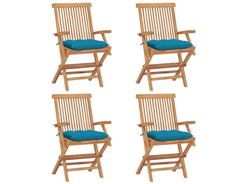 Zahradní židle se světle modrými poduškami 4 ks masivní teak 3065636