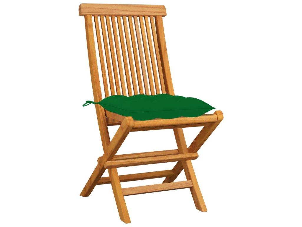Zahradní židle se zelenými poduškami 4 ks masivní teak 3062588