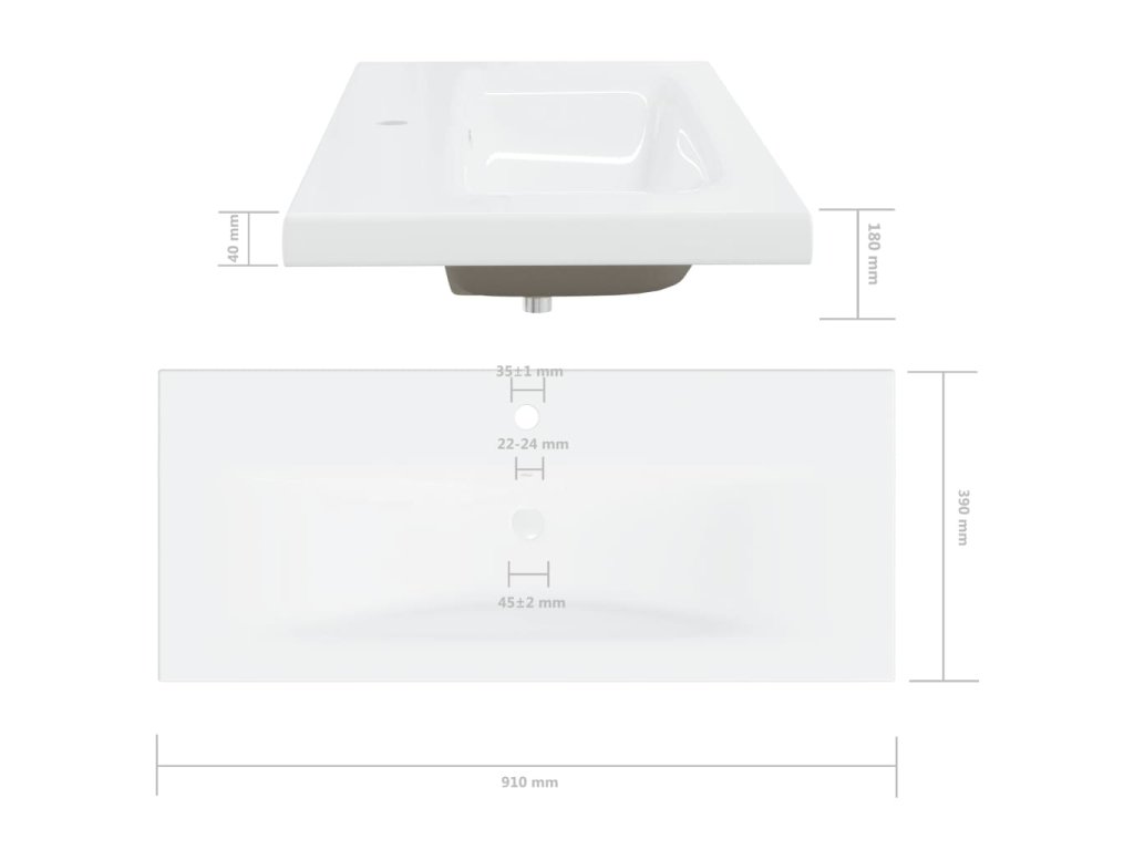 - Rozměry umyvadla: 101 x 39 x 18 cm (D x Š x V)
