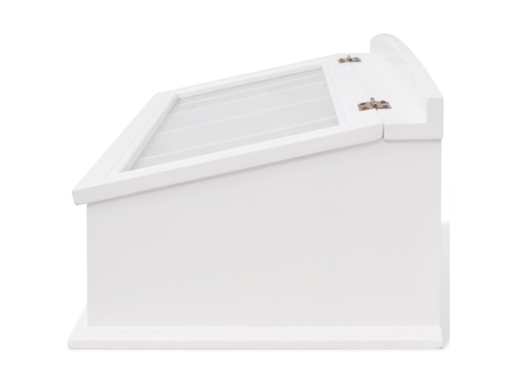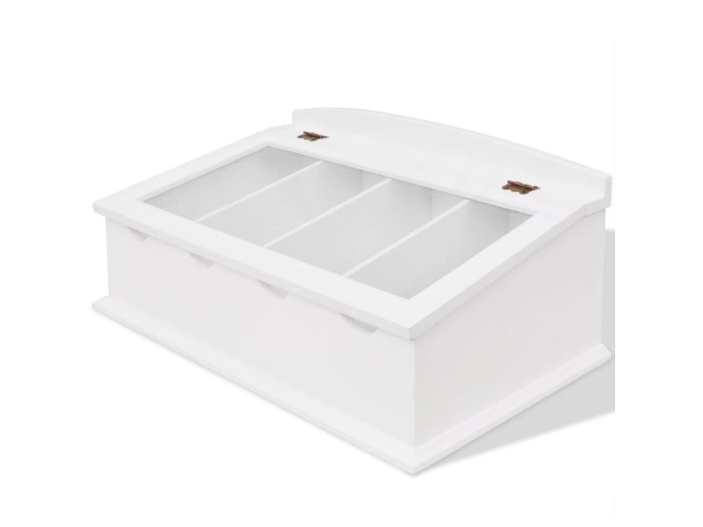 Tento zásobník na příbory má 4 velké a hluboké přihrádky, které poskytují dostatek úložného prostoru. Je opatřen skleněným víkem, které chrání předměty uvnitř před prachem, a zároveň vám umožní mít přehled o vaší sadě příborů a rychle se dostat k uloženým předmětům, které potřebujete. Tento zásobník na příbory je vyroben z vysoce kvalitního MDF, takže je velmi odolný.