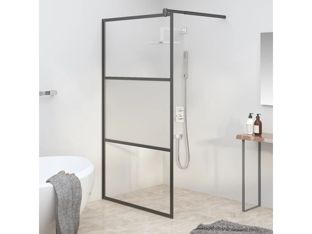 Zástěna do průchozí sprchy 115 x 195 cm napůl mléčné ESG černá 151875