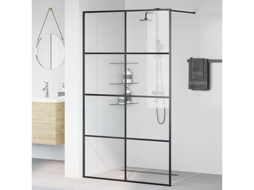 Zástěna do průchozí sprchy čiré ESG sklo 115 x 195 cm černá 151036