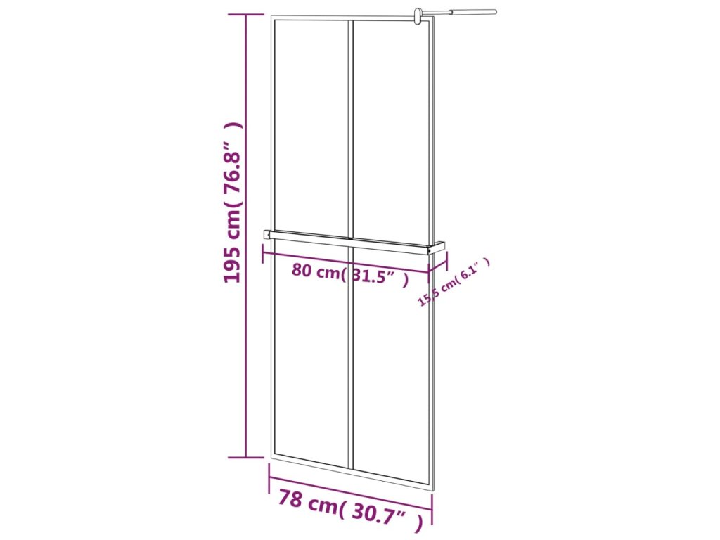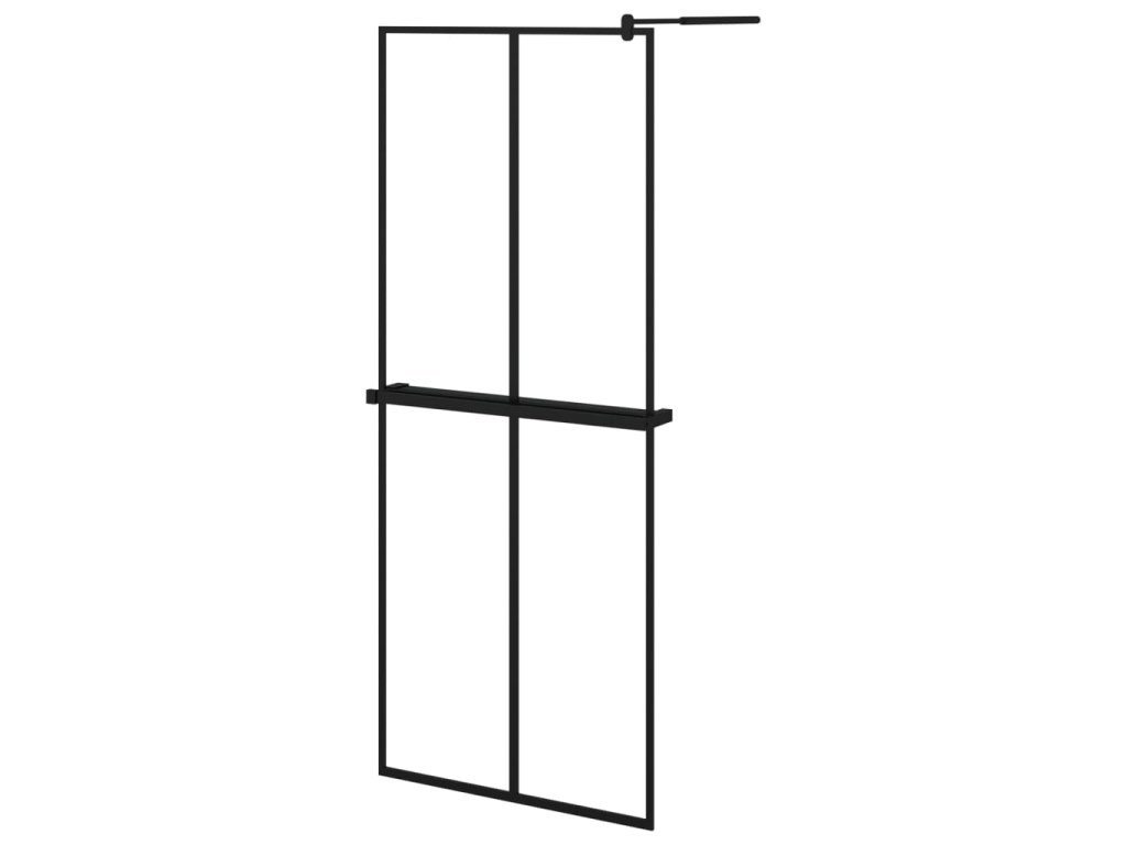 Zástěna do průchozí sprchy s policí černá 80x195 cm ESG/hliník 3185444