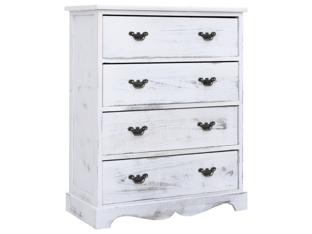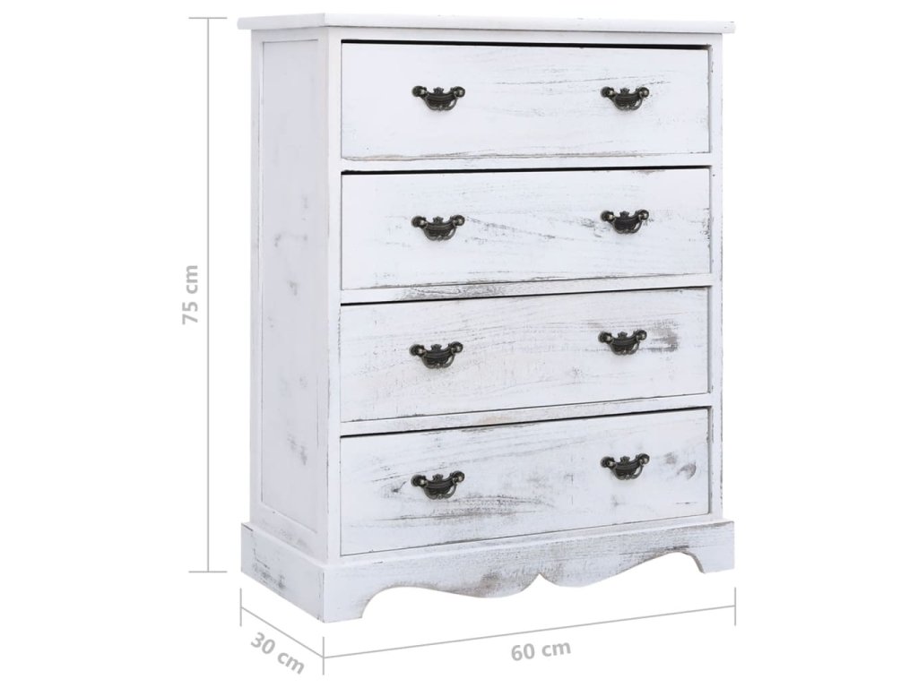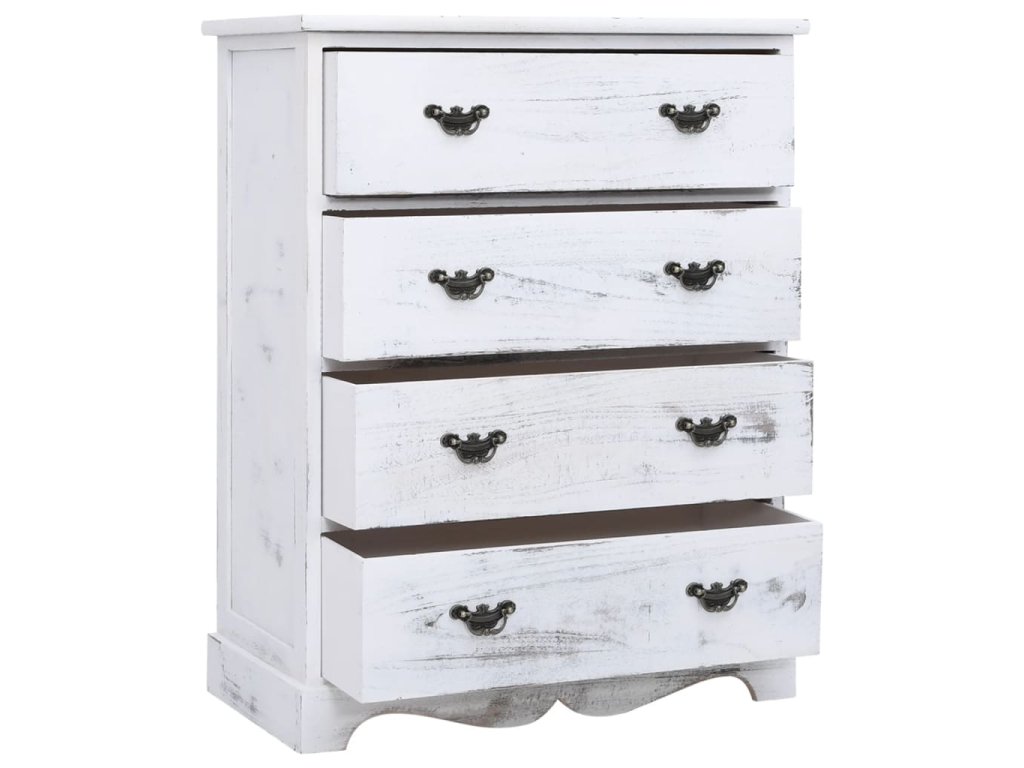 Tato skříňka je vyrobena z kvalitního dřeva pavlovnie a topolu a MDF desky, je tedy mimořádně robustní a má dlouhou životnost. Má 4 zásuvky, které poskytují dostatek úložného prostoru pro vaše osobní potřeby, jako jsou klíče, poznámkové bloky, knihy, časopisy nebo jiné drobnosti a nezbytnosti.