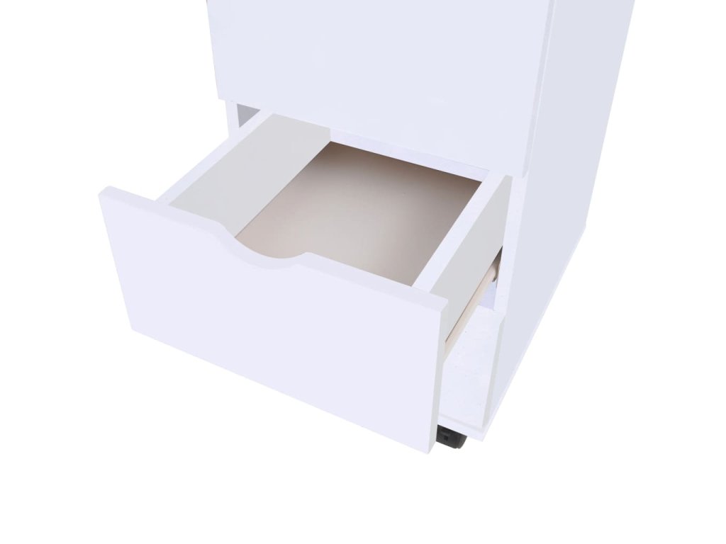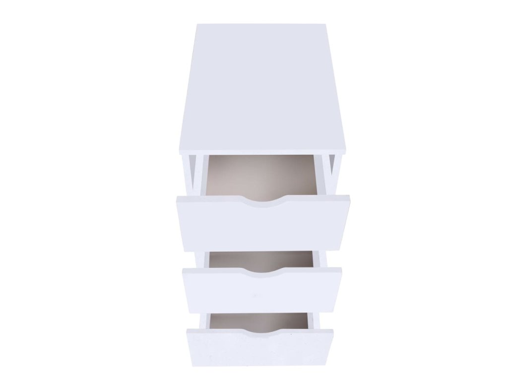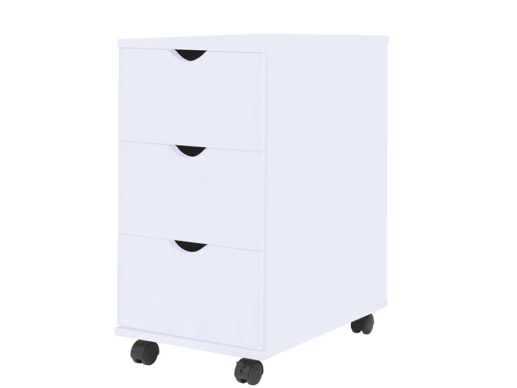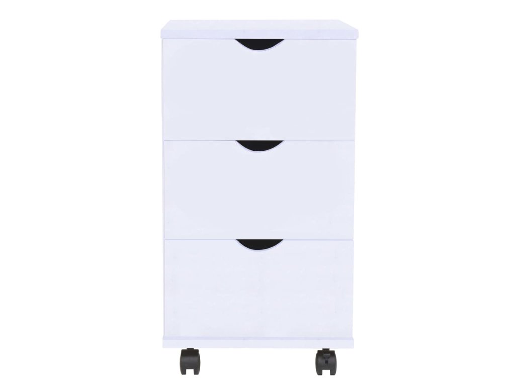 Skříňku tvoří rám z kompozitního dřeva s plastovými kolečky, takže je stabilní a odolná. Tři zásuvky poskytují dostatek úložného prostoru pro úhledné uspořádání různých předmětů, kde je budete mít na dosah ruky. Pomocí koleček lze skříňku snadno a pohodlně přesouvat.