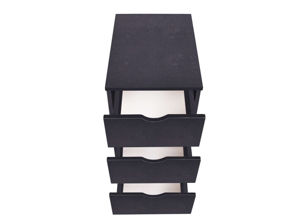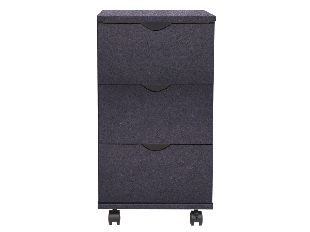 Skříňku tvoří rám z kompozitního dřeva s plastovými kolečky, takže je stabilní a odolná. Tři zásuvky poskytují dostatek úložného prostoru pro úhledné uspořádání různých předmětů, kde je budete mít na dosah ruky. Pomocí koleček lze skříňku snadno a pohodlně přesouvat.