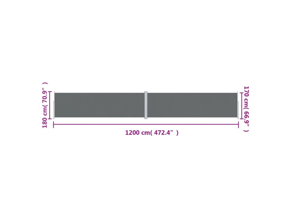 Zatahovací boční markýza antracitová 180 x 1 200 cm 318074