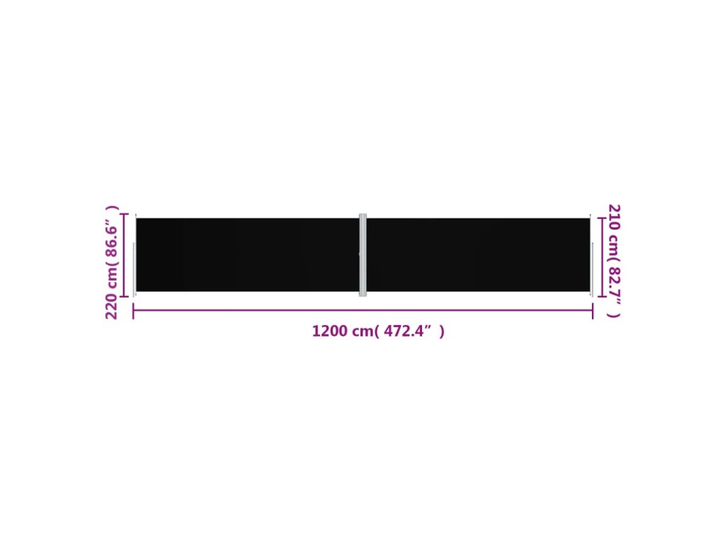 Zatahovací boční markýza černá 220 x 1 200 cm 318084