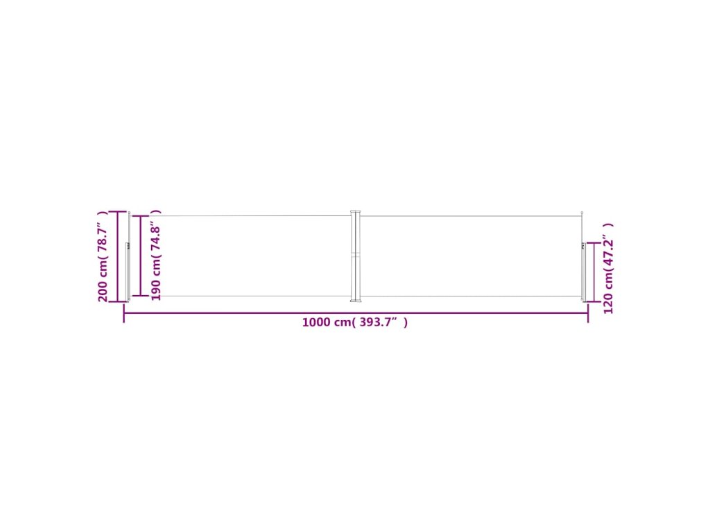 Jednoduchý a přitom stylový design této zástěny se bude krásně vyjímat na každé zahradě, terase, balkonu apod. Zatahovací boční markýza je vybavená funkcí automatického zatažení a můžete ji roztáhnout do šířky až 1 000 cm. Je vyrobená z polyesteru potaženého PU vrstvou, který chrání proti UV záření, netrhá se a je voděodolný.