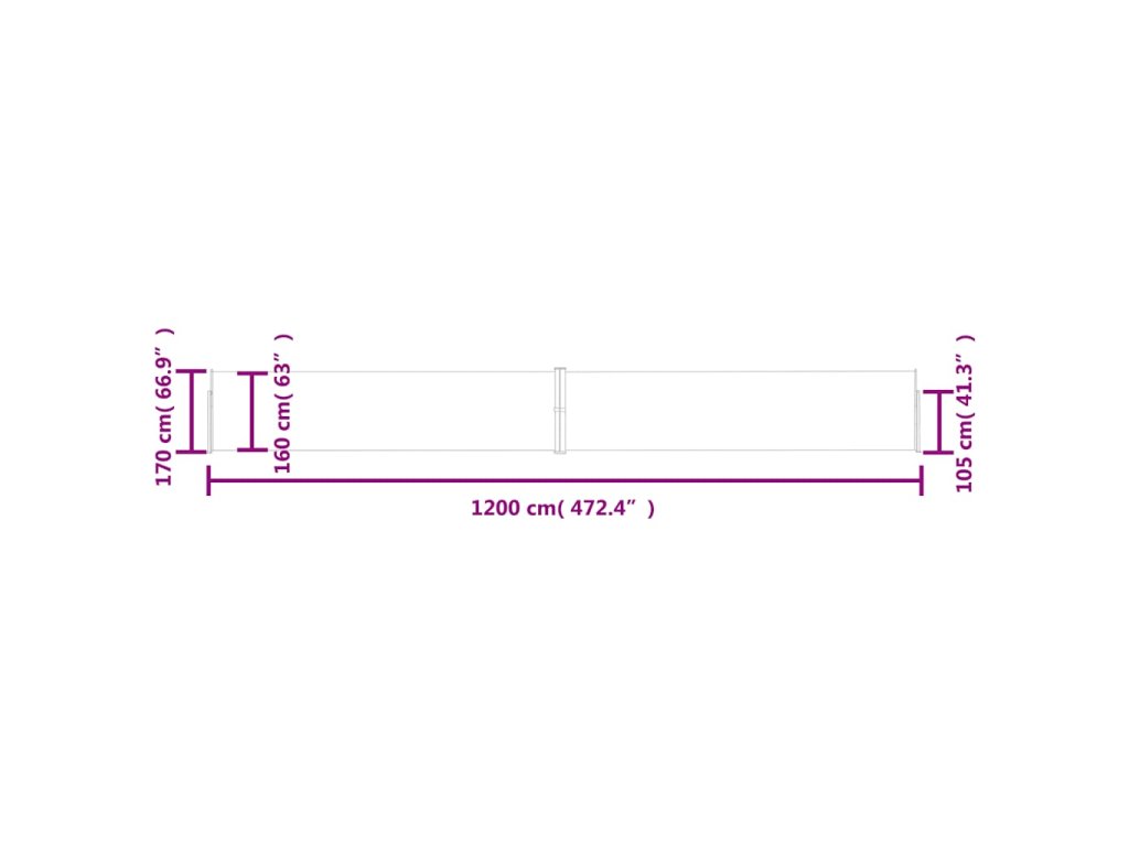 Zatahovací boční markýza / zástěna 170 x 1200 cm hnědá 313396