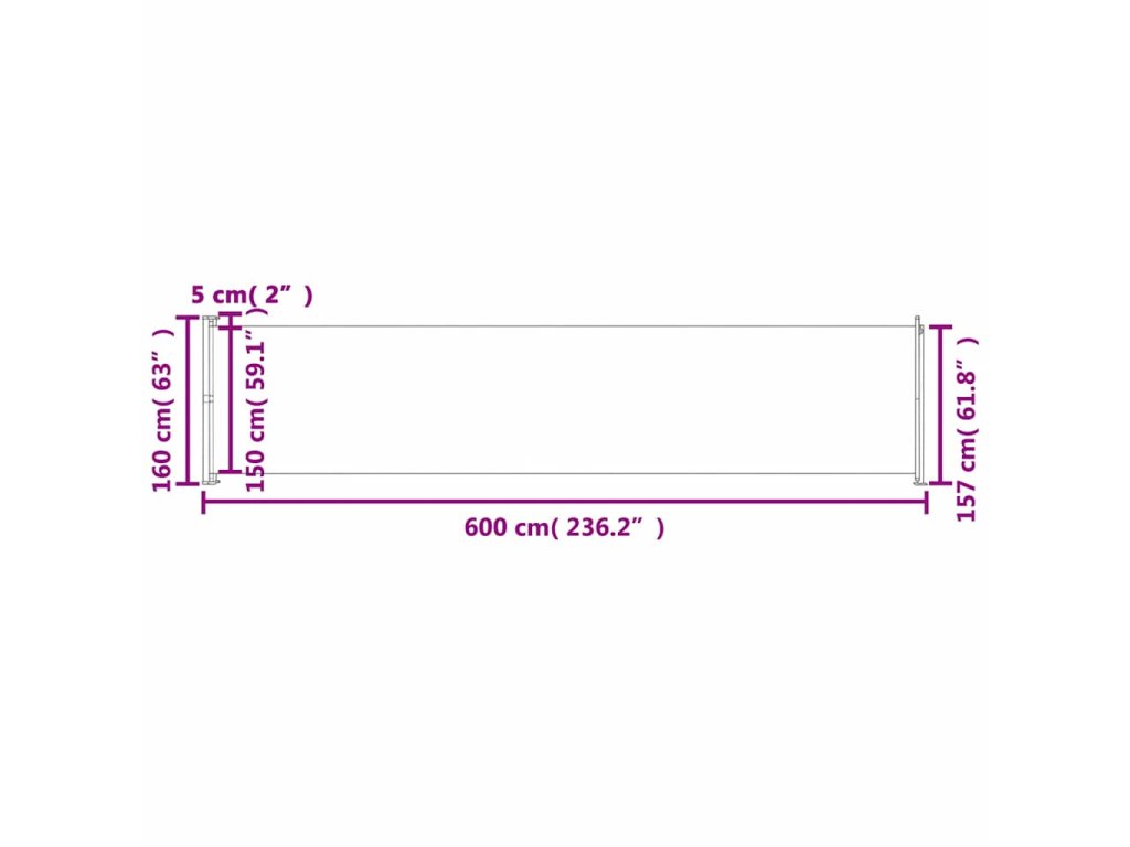 Zatahovací boční markýza / zástěna 600 x 160 cm šedá 313379