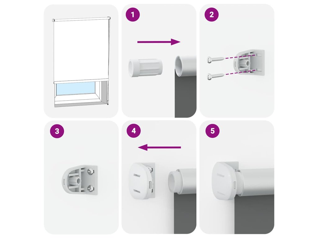 Díky zahrnutému montážnímu příslušenství, se tyto rolety snadno instalují a používají. Buď instalujte roletu na zeď nebo strop pomocí šroubů a hmoždinek, které jsou součástí balení nebo ji zavěste na okno. Tažný řetízek může být namontován buď na levou nebo na pravou stranu.