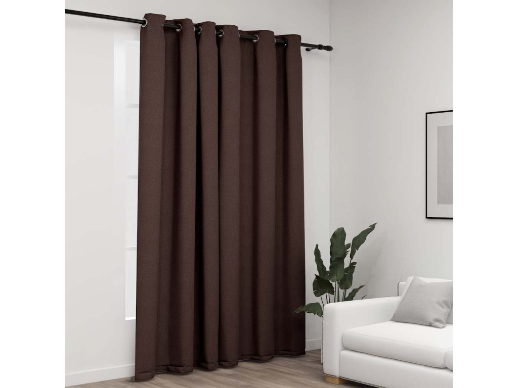 Zatemňovací závěs s kroužky vzhled lnu taupe 290 x 245 cm 321203