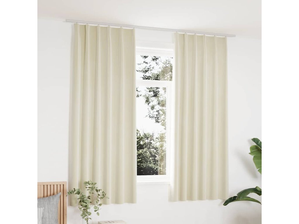Zatemňovací závěsy s háčky 2 ks sametové krémové 140 x 175 cm 134516