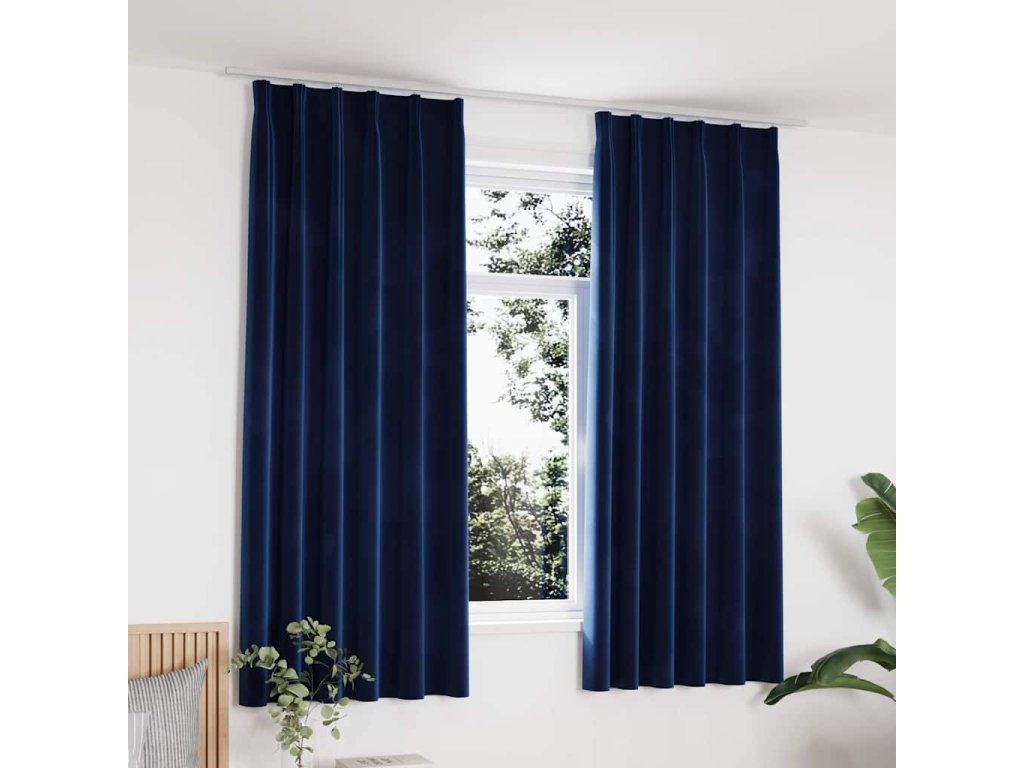 Zatemňovací závěsy s háčky 2 ks sametové tmavě modré 140x175 cm 134532
