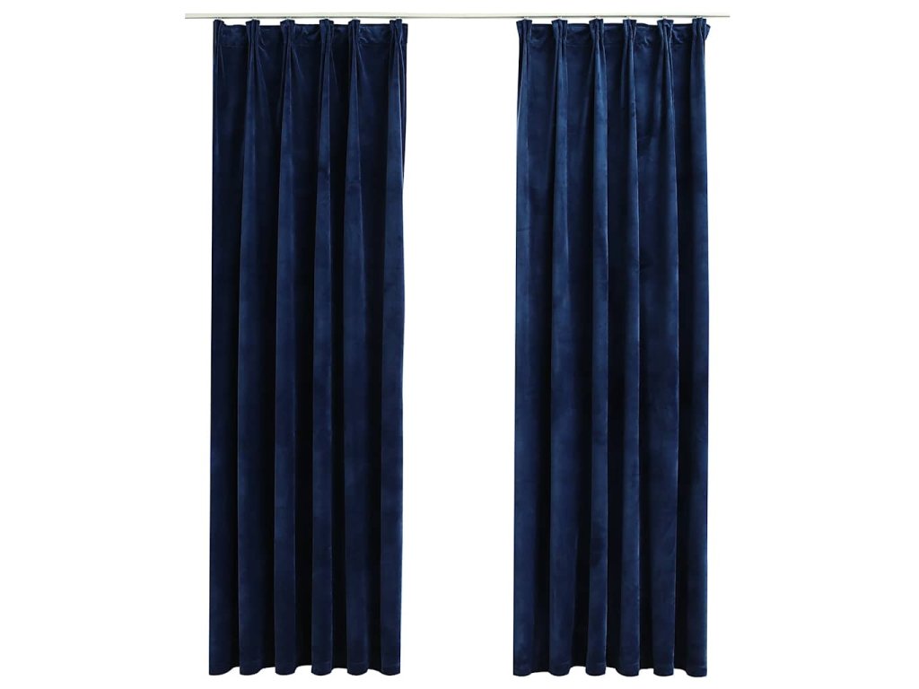 Zatemňovací závěsy s háčky 2 ks sametové tmavě modré 140x225 cm 134533